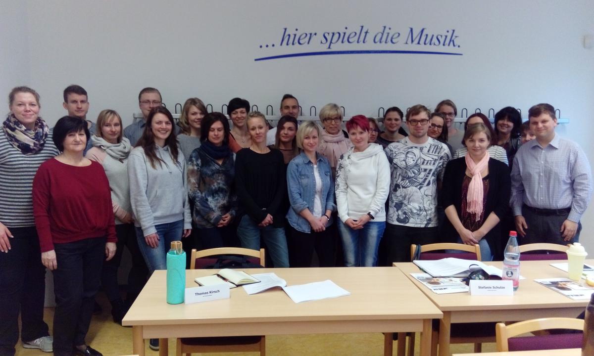 Bildtext: die stellv. Studienleiterin Gundula Grönke begrüßte gemeinsam mit der Dozentin Monika Schefuhs, 2. v. l., die Teilnehmenden des 20. Lehrganges „Ausbildung der Ausbilder“