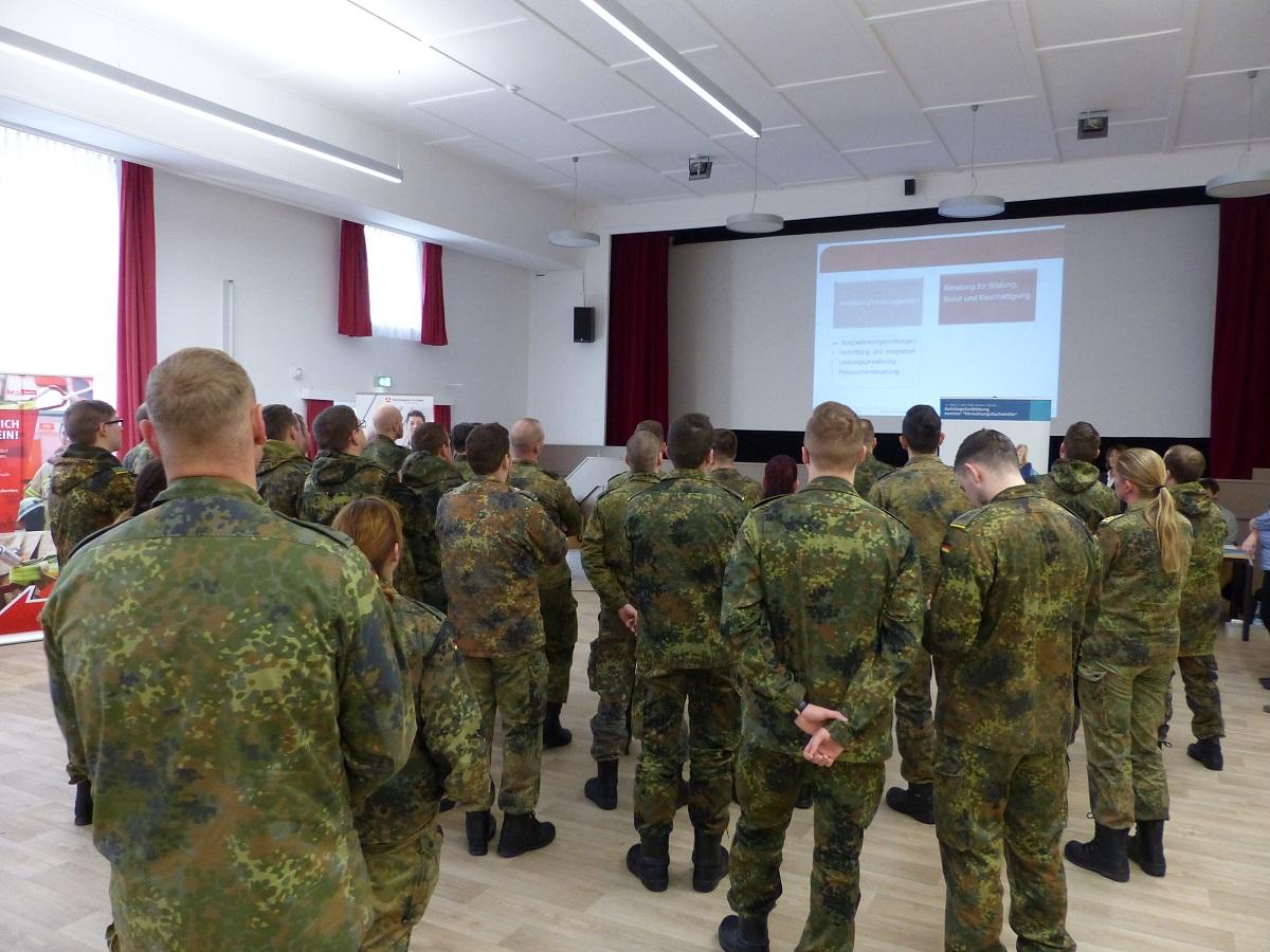 Über 60 Zeitsoldaten waren am 8. November auf der Job- und Fachmesse „Karriere Öffentlicher Dienst“ am Bundeswehrstandort in Storkow an weiterführender Ausbildung interessiert. Foto: NLSI