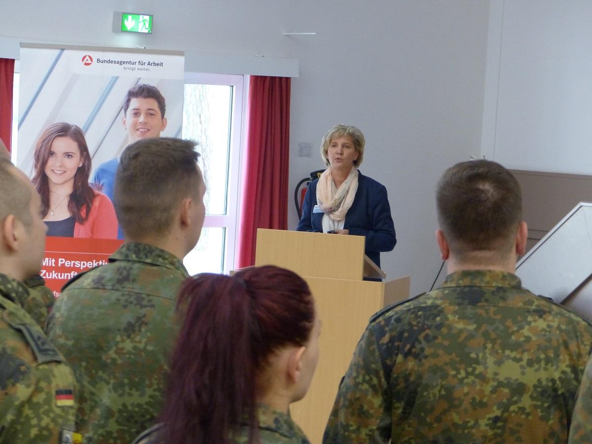 Im Rahmen eines Fachvortrages erläuterte die Stellvertretende Studienleiterin Gundula Grönke die Ausbildung zum Verwaltungsfachangestellten und zum Verwaltungsfachwirt für Soldaten. Foto: NLSI